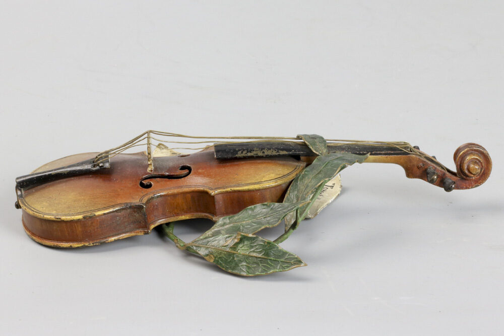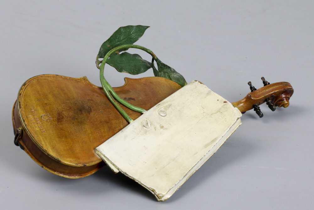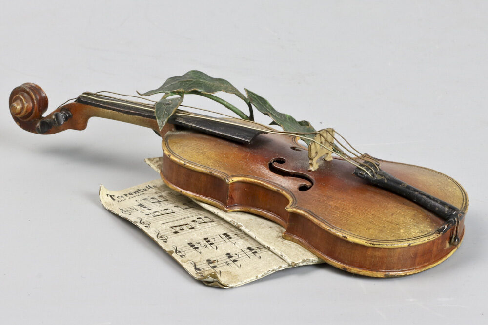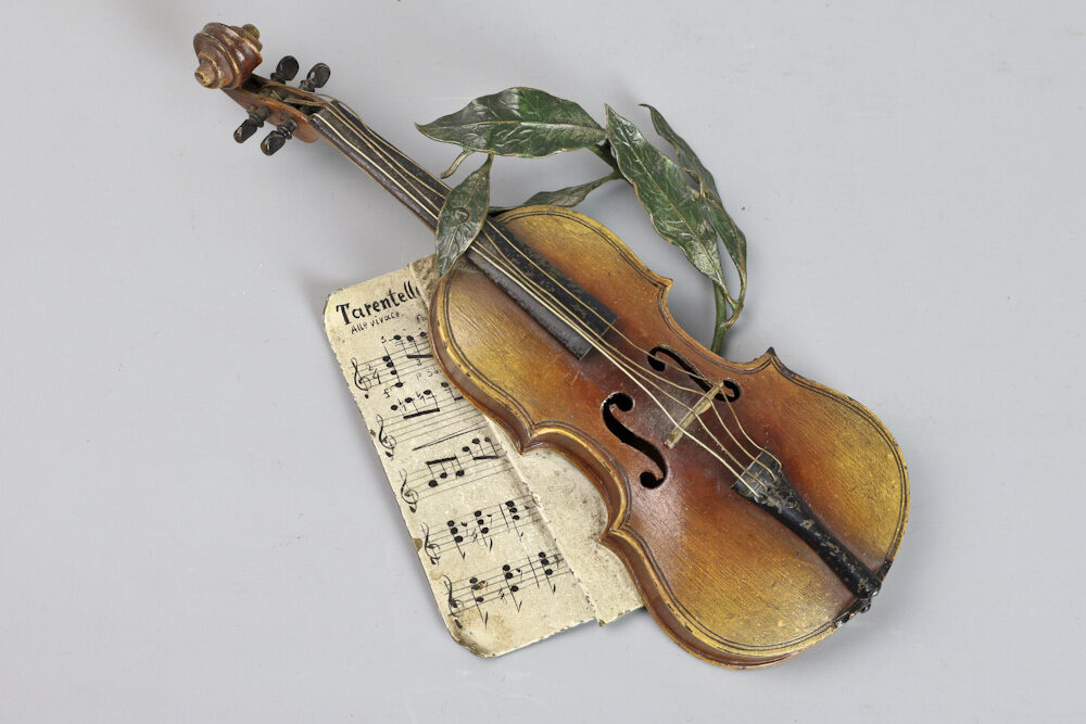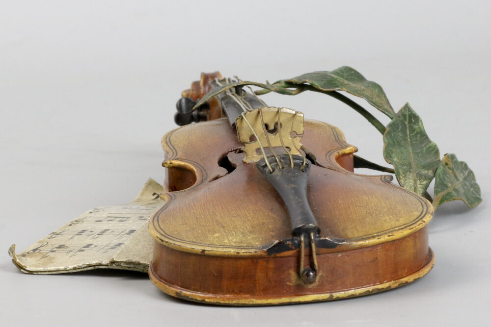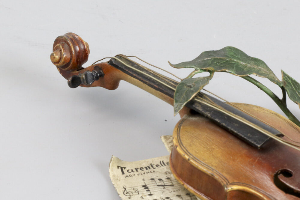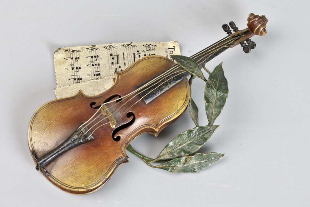 Zeldzame Weens bronzen viool met strijkstok door Franz Xavier Bergmann gemaakt rond 1895.