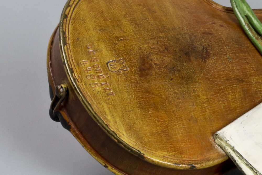 Voorzien van ingedrukt Bergmann kruikje en Geschützt en nummer 4485. Lengte viool 17,5 cm