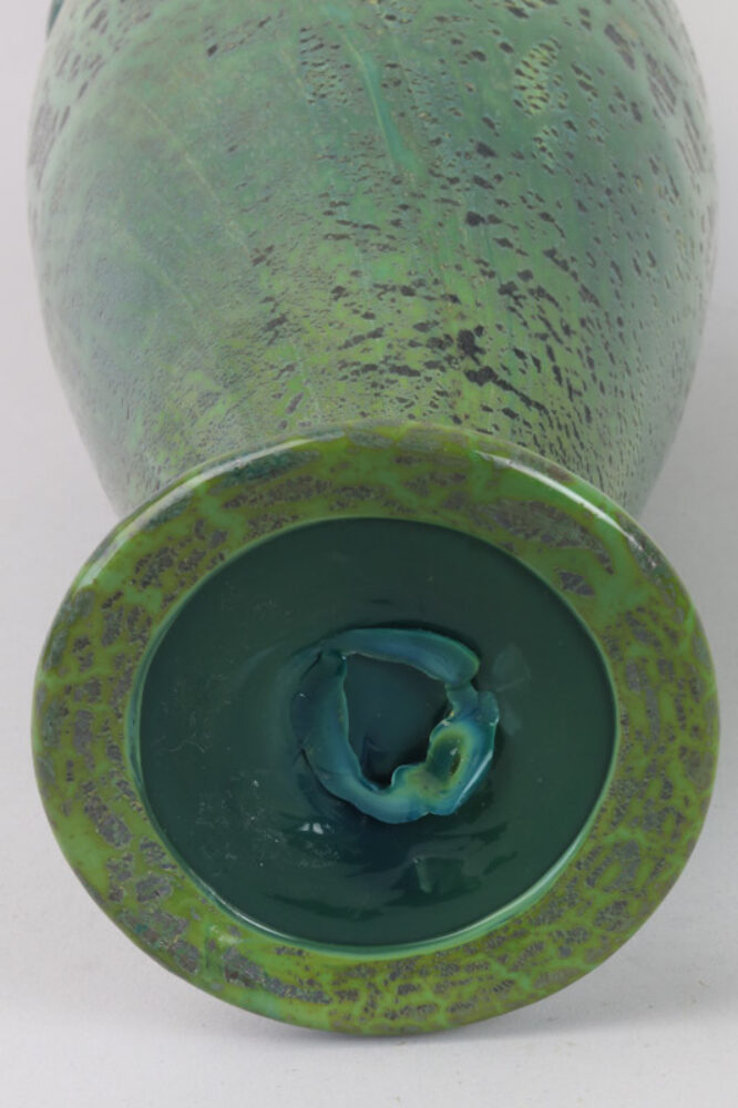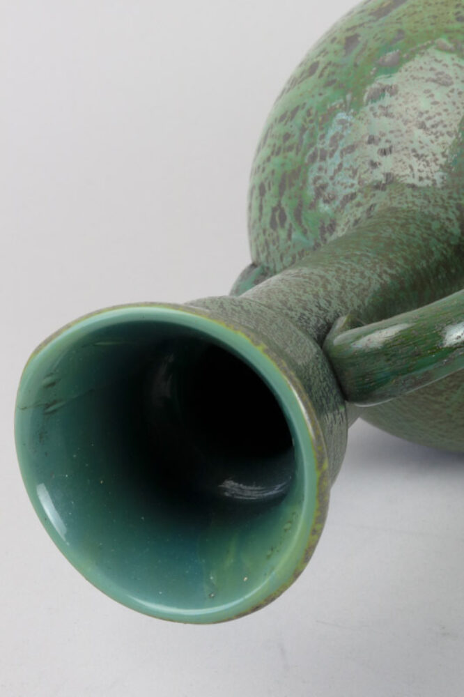 De vaas heeft twee aangezette handvatten en een omgeslagen voet. Verkeert in onberispelijke staat, en is 40.5 cm hoog.