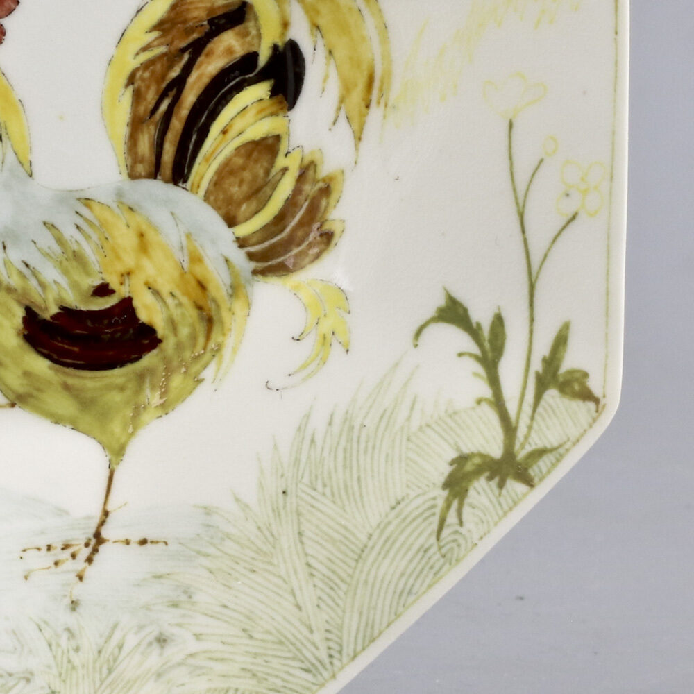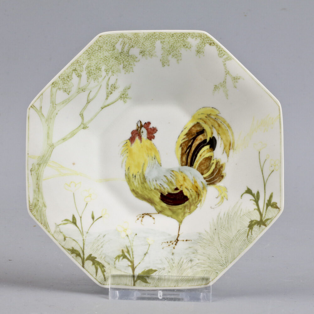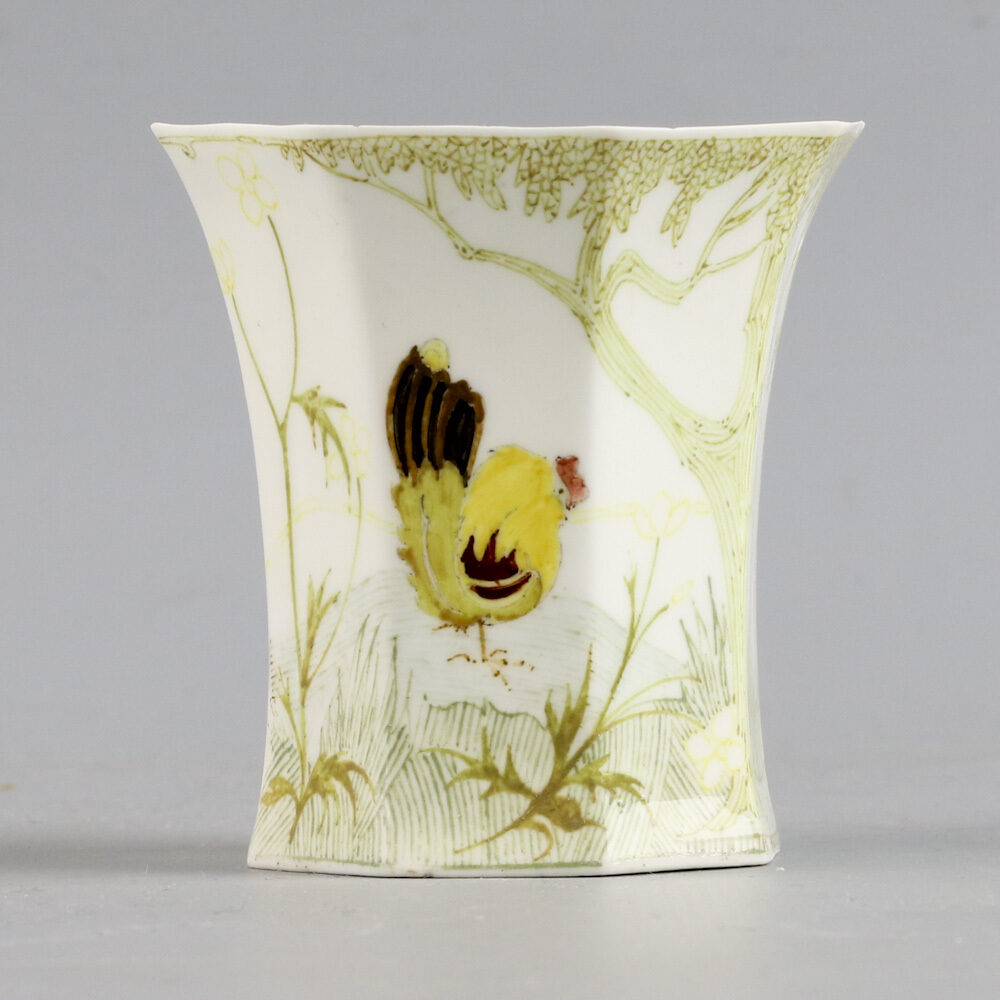 Eggshell porcelain cup and saucer by Sam Schelling depicting a walking rooster, made in 1906, height 6 cm.