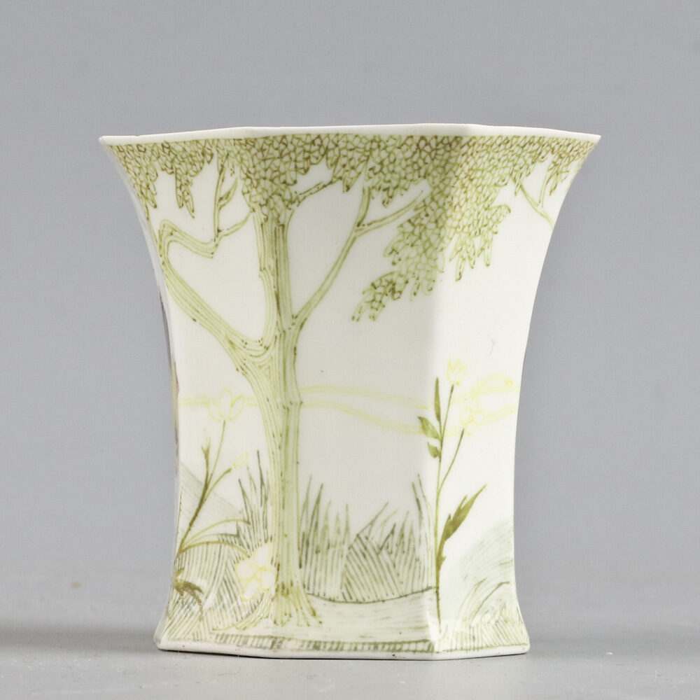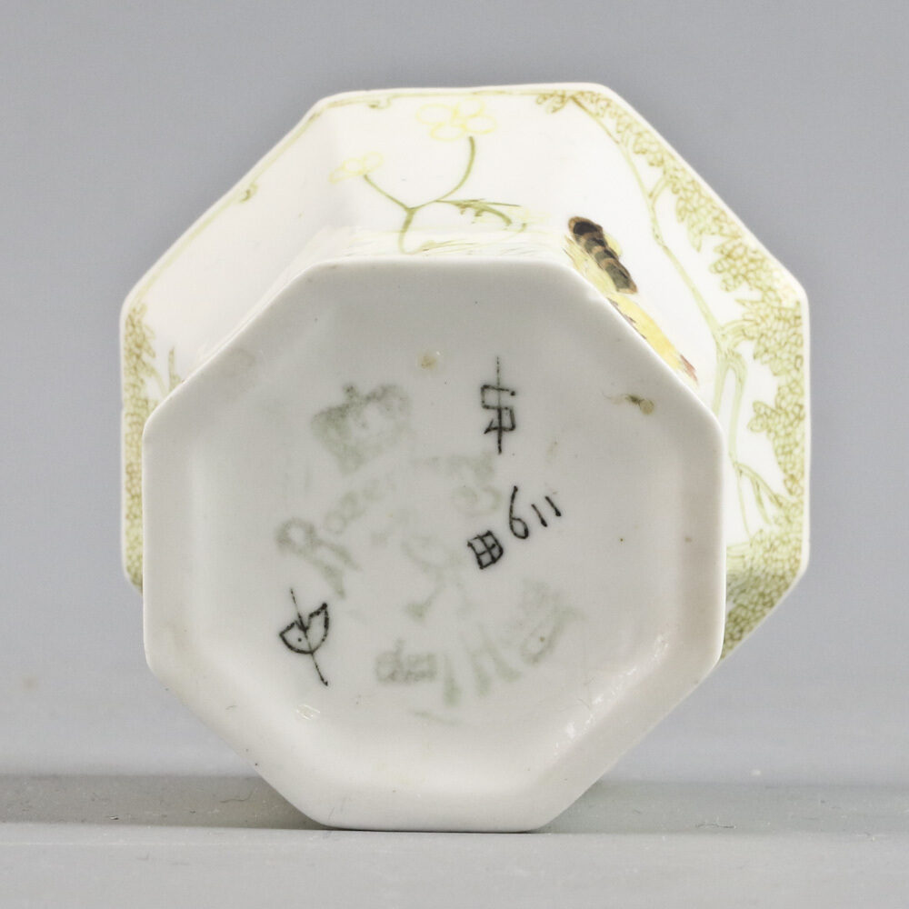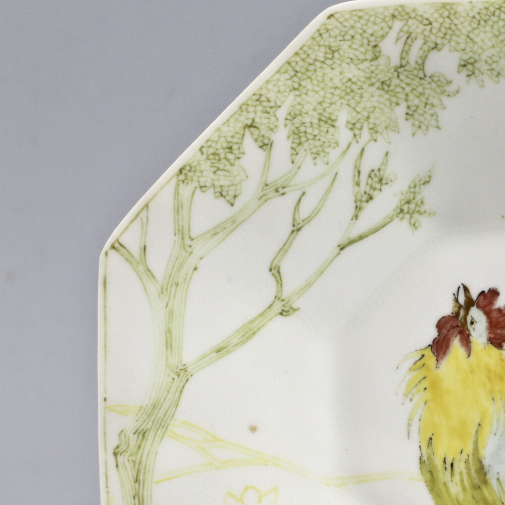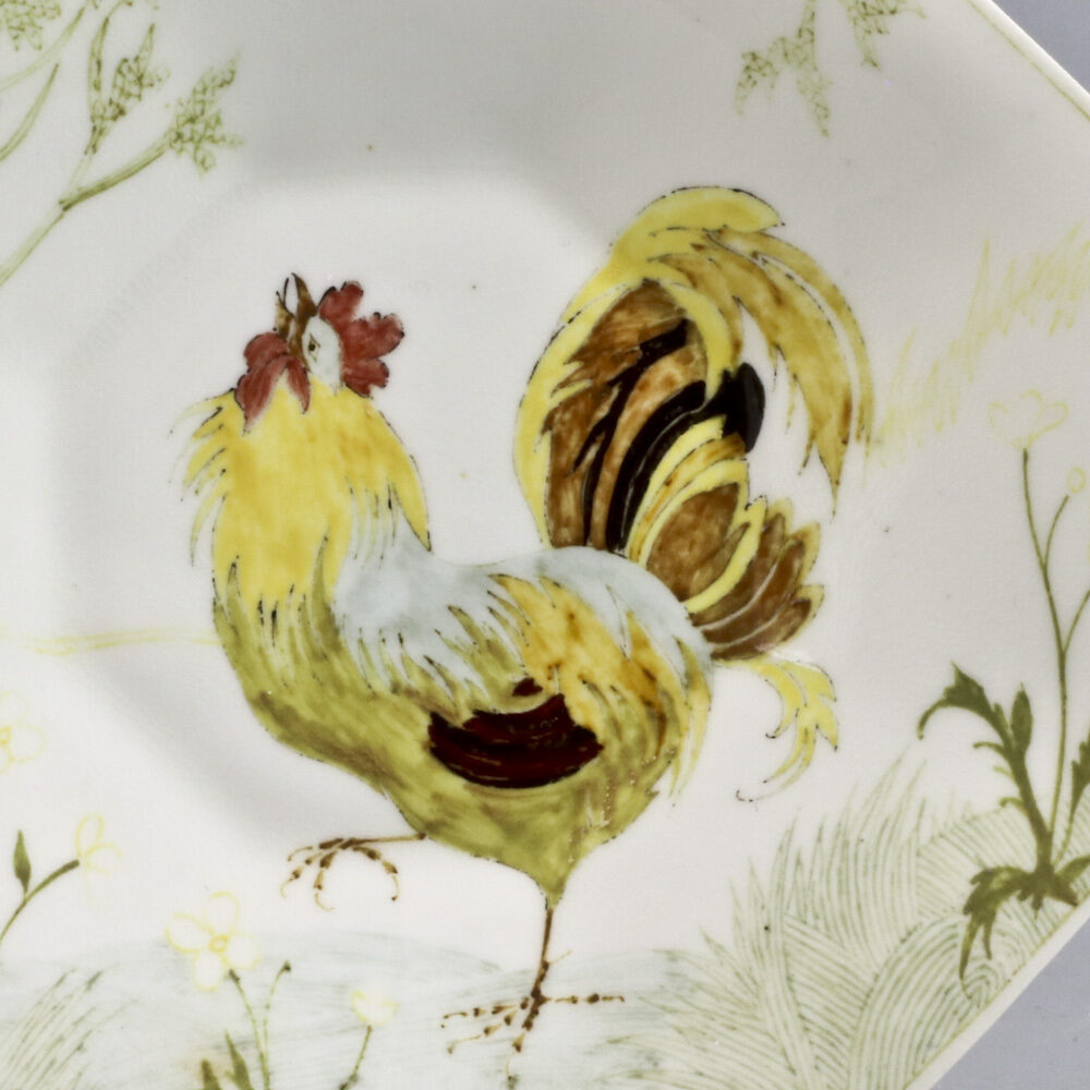 Eggshell porcelain cup and saucer by Sam Schelling depicting a walking rooster, made in 1906, height 6 cm.