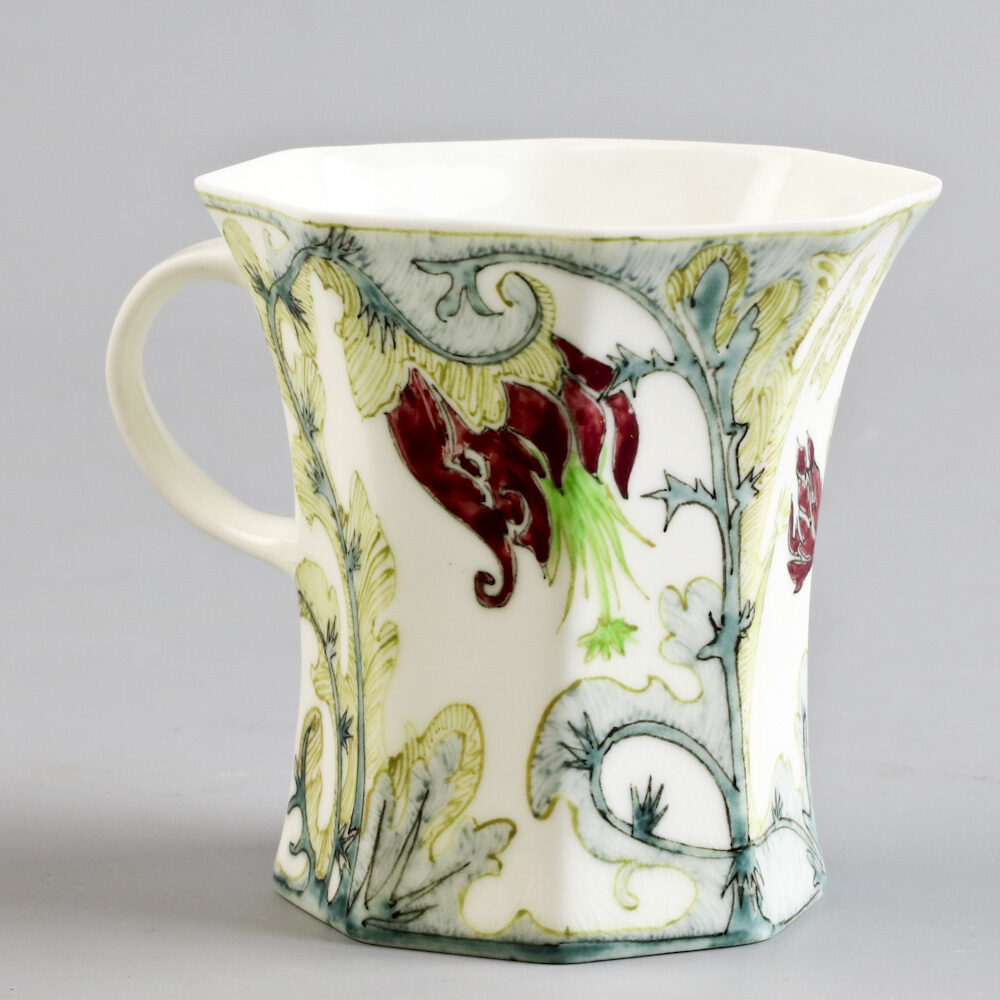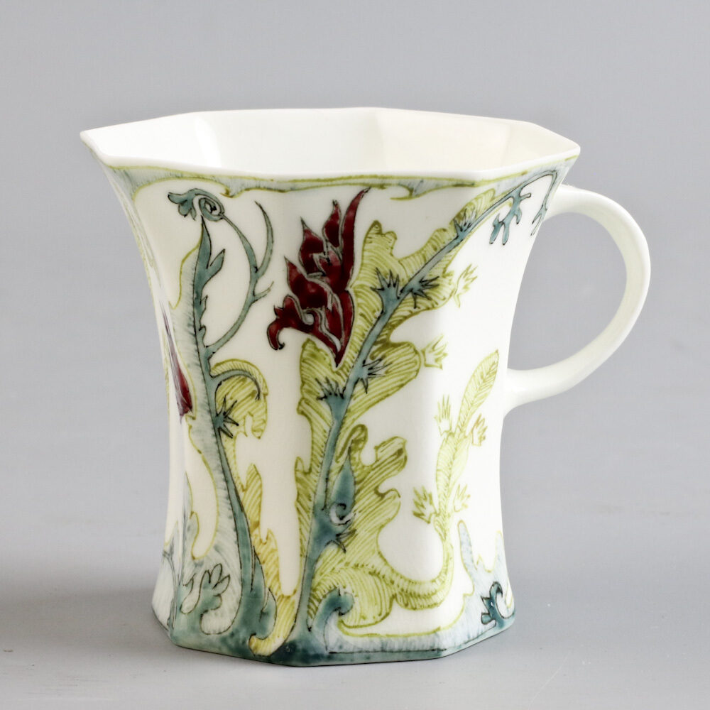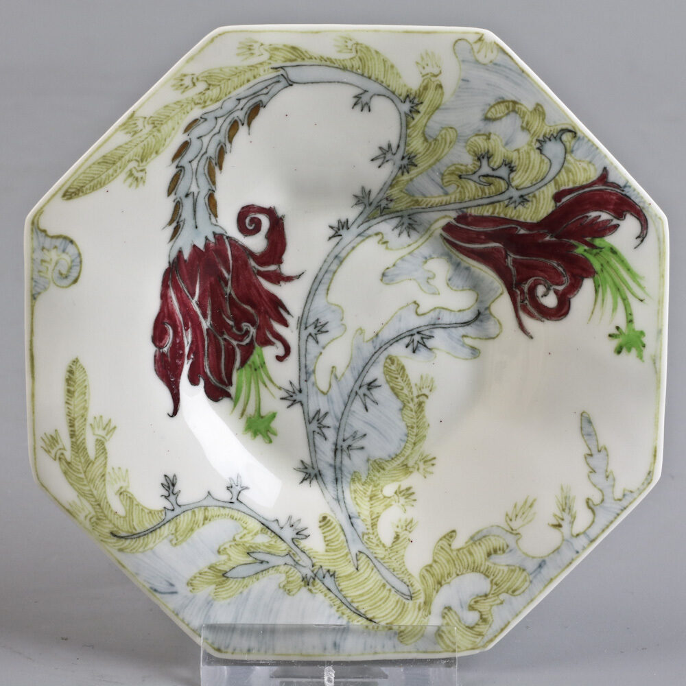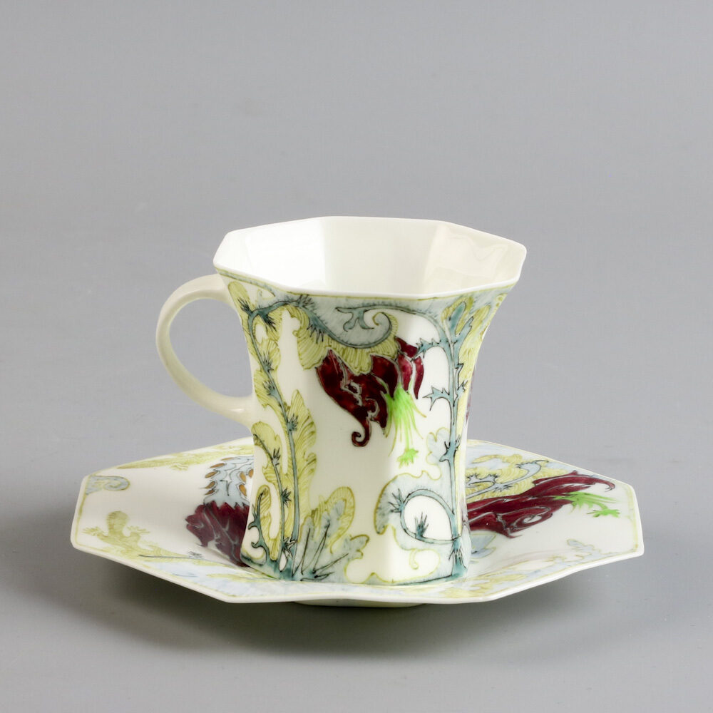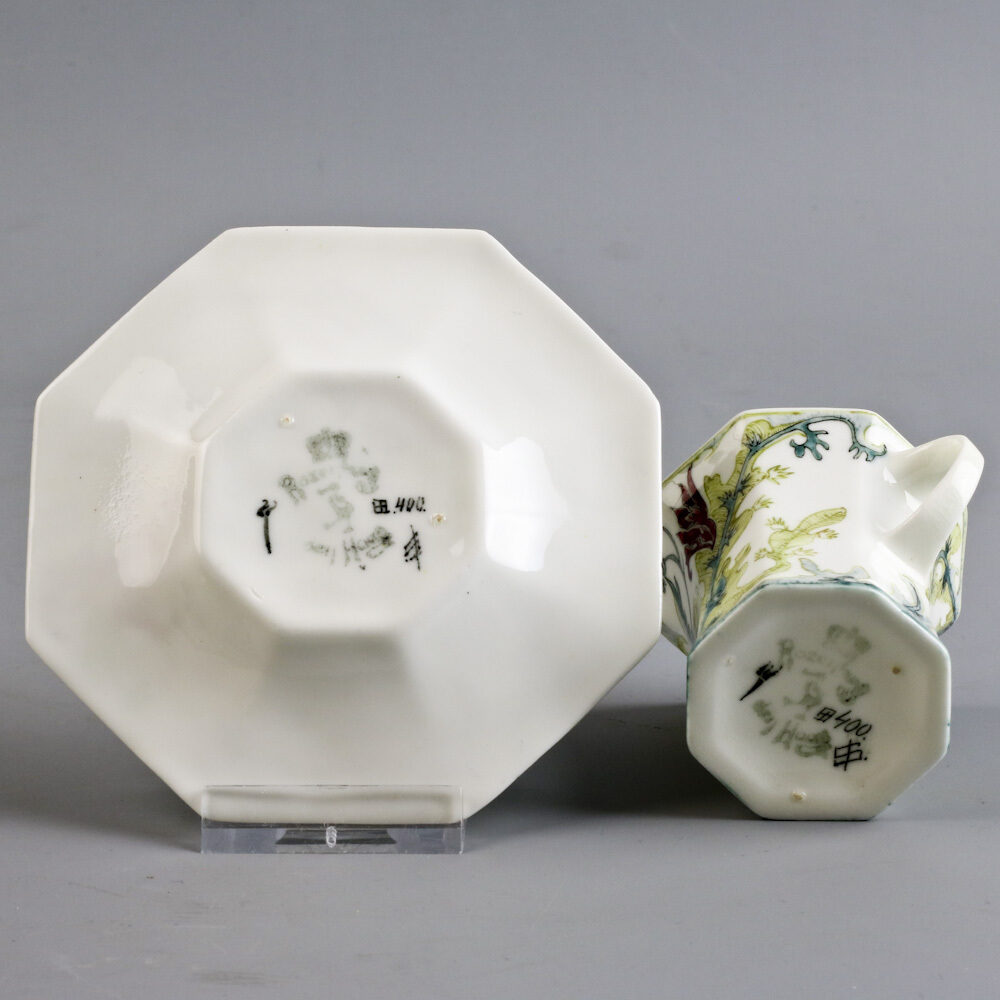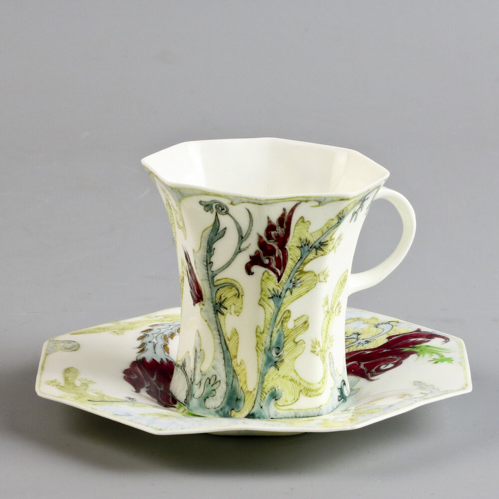 Rozenburg eggshell porcelain cup and saucer decorated with a Semper Vivum plant by Samuel Schellink, dated 1910.